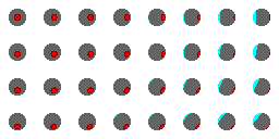 - Offline, I generated evenly distributed views of the enemy ship for each scale, from 2px diameter to 32px.